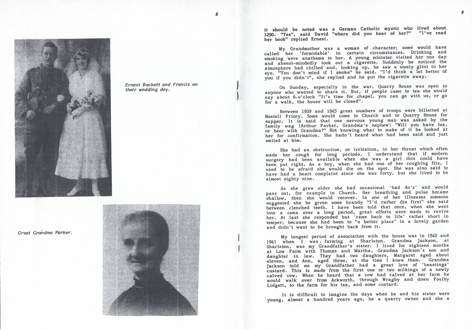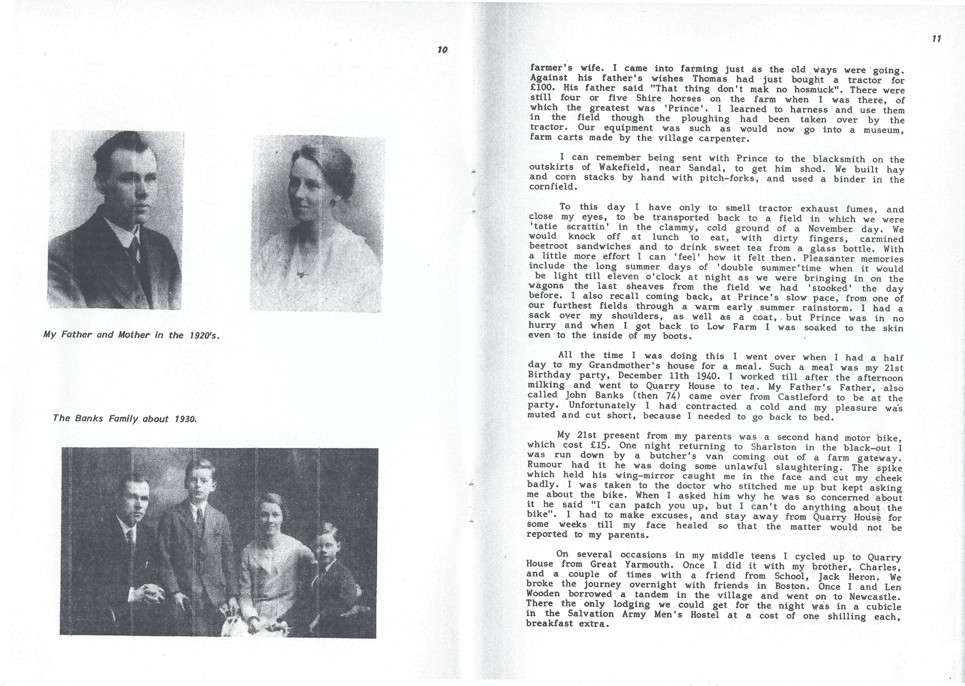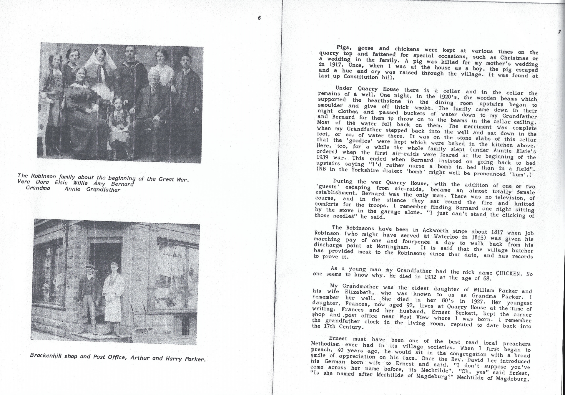 A booklet written by John Banks about his memories of Quarry House , Moortop, Ackworth